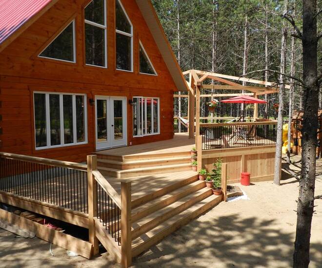 Are you looking to take advantage of a view and love the loft style home? The Pinewood is a scaled down version of the "A" frame homes that everyone loves. It is smaller but does not lack in any area except the price!